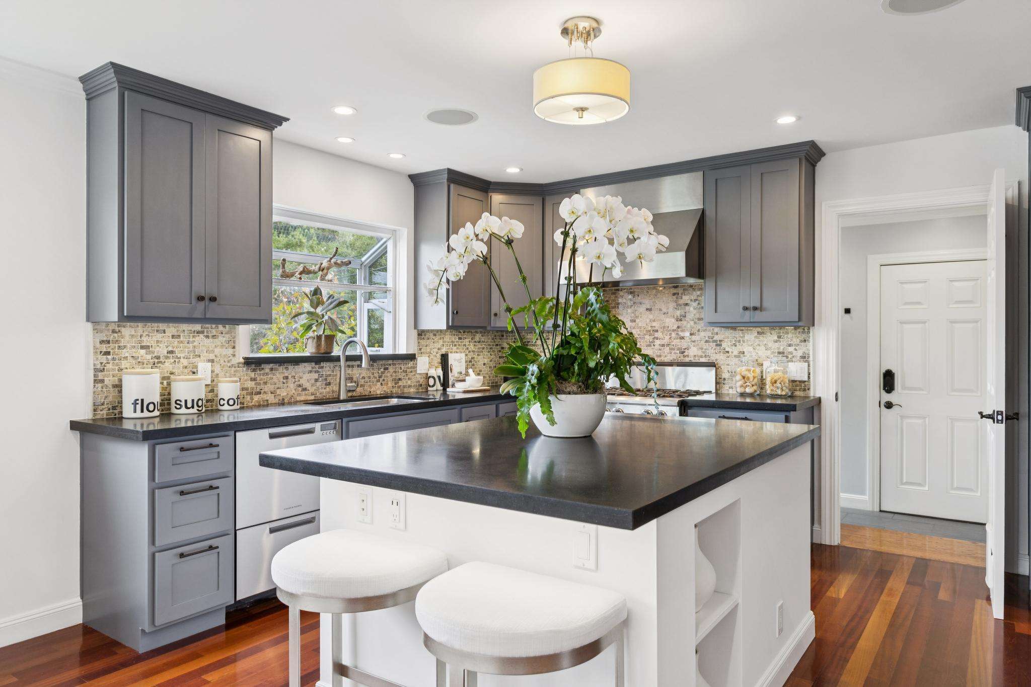 Combining many hard-to-finds, this one level, remodeled Baywood Knolls property is equal parts comfort, class and tech. A polished curb appeal comes from a modern color palette and new front landscaping. Anchored by a large, open kitchen with stainless appliances, honed granite countertops, a central island and adjacent pantry/bar area, the main living space has exceptional interior flow. Step out to the magical backyard with its wine country vibe, true extended living space and customized for entertaining with extensive automated lighting and audio systems, and game day TV corner. A peaceful, unobstructed treetop view frames the SF downtown’s iconic towers in the distance. Three spacious bedrooms and two baths include a primary suite with views and a remodeled dressing room area with a wall of closets. An immaculate, finished garage with multiple storage options can double as workout and project space, while a separate laundry/mudroom corrals everyday messes. Connecting everything is an integrated tech/smart home system++ that streamlines and enhances countless little things, creating more time for the moments that really matter.